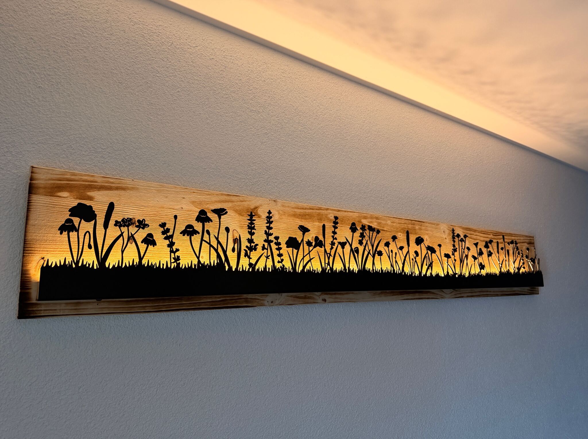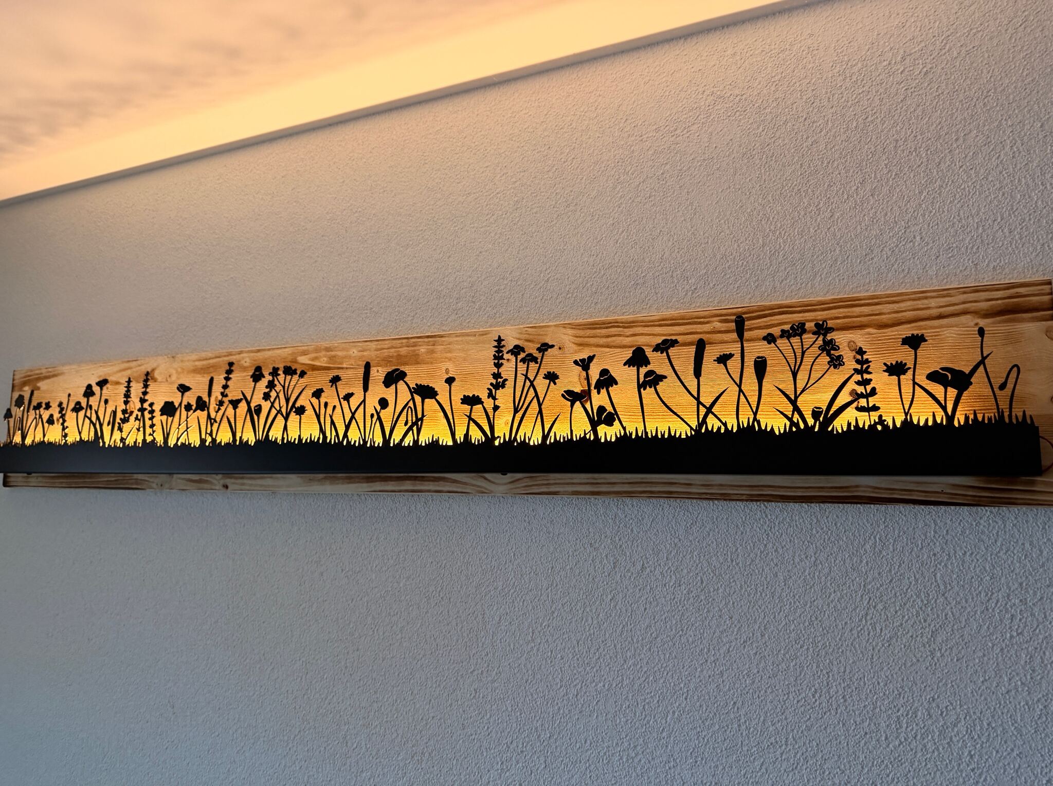 Bild beleuchtet 185cm mit Silhouette Blumenwiese