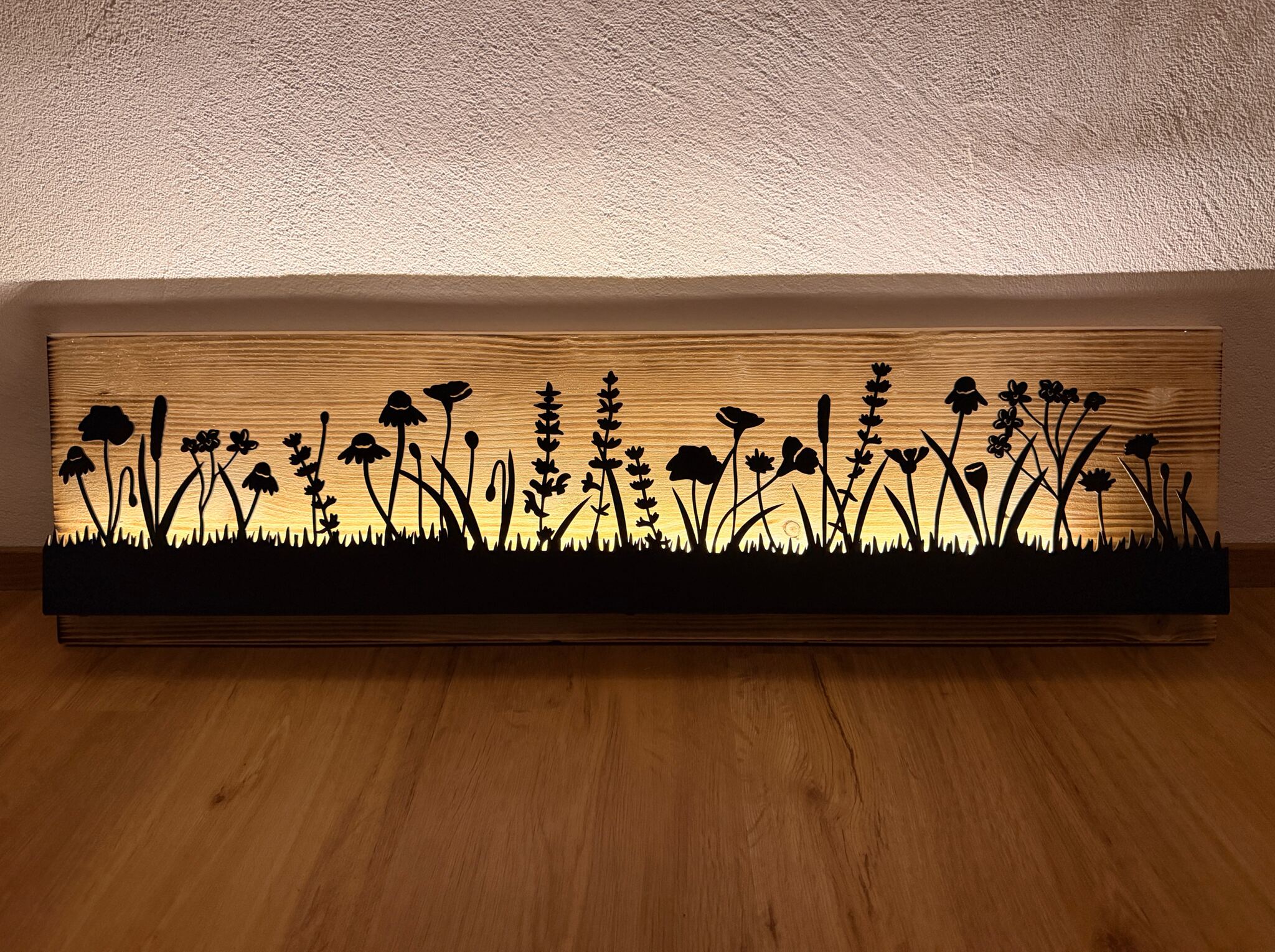 Bild beleuchtet 92 cm mit Silhouette Blumenwiese