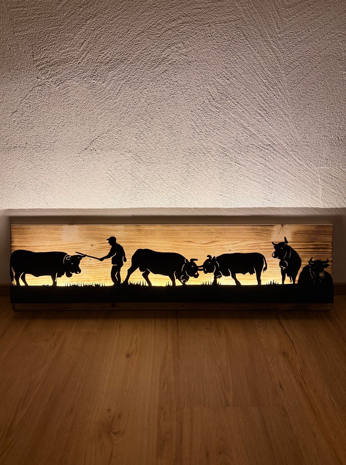 Bild beleuchtet 92 cm mit Silhouette Eringer Kühe