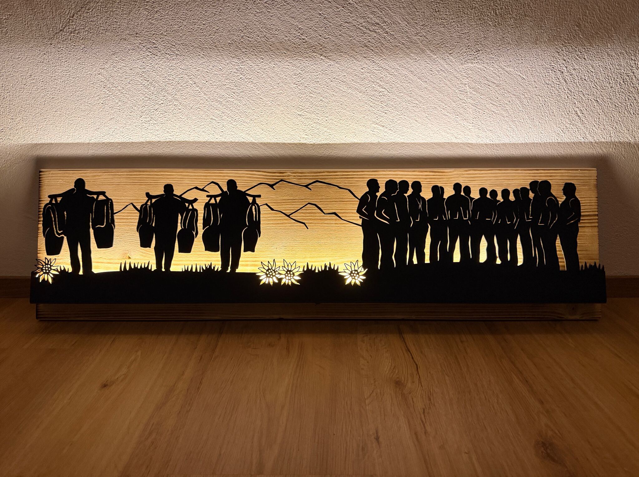Bild beleuchtet 92 cm mit Silhouette Treichler und Jodler-gruppe