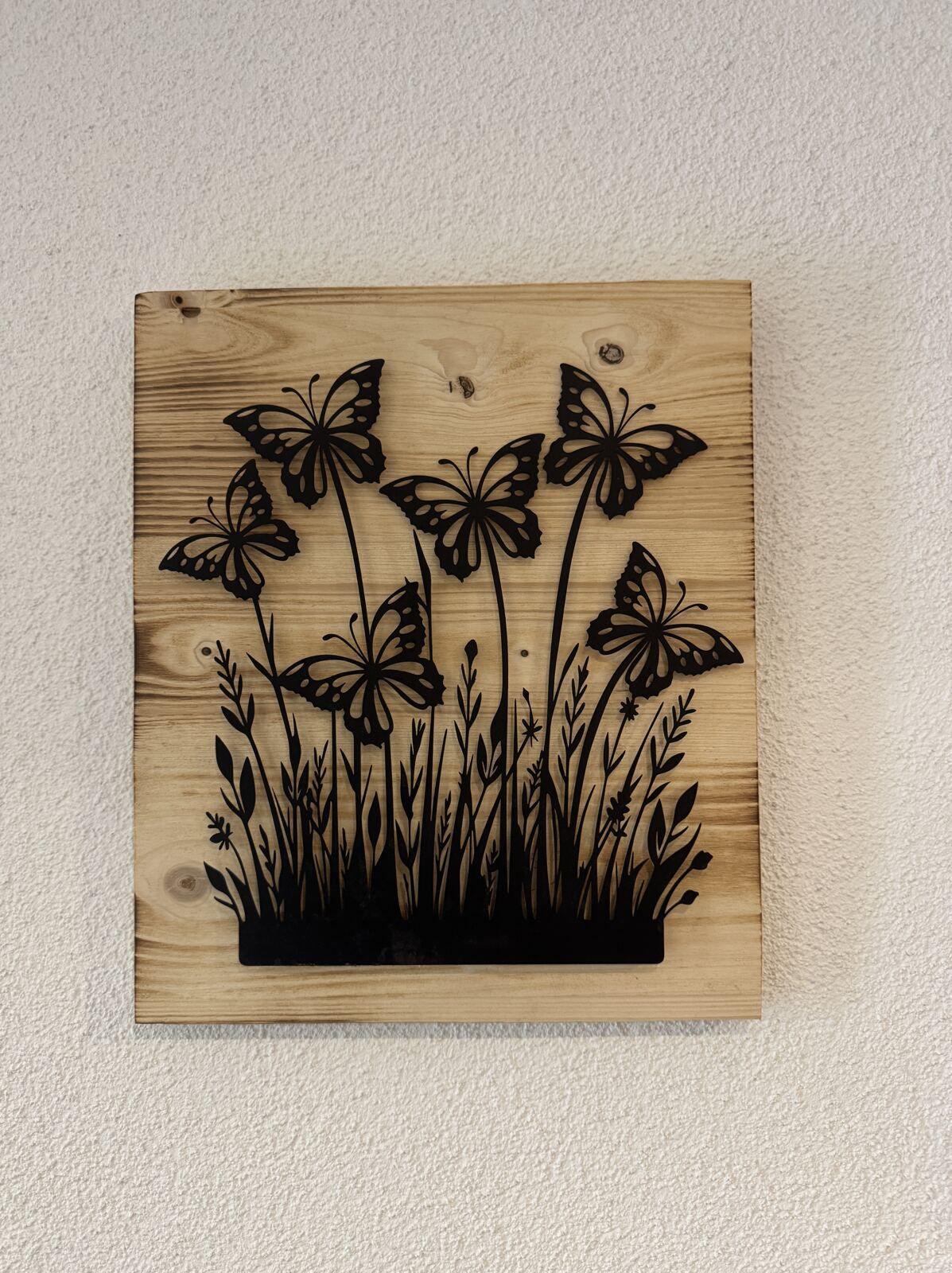 Bild Schmetterlinge 32 x 37cm, die Schmetterlinge bestehen aus Eisenblech. Ohne Beleuchtung