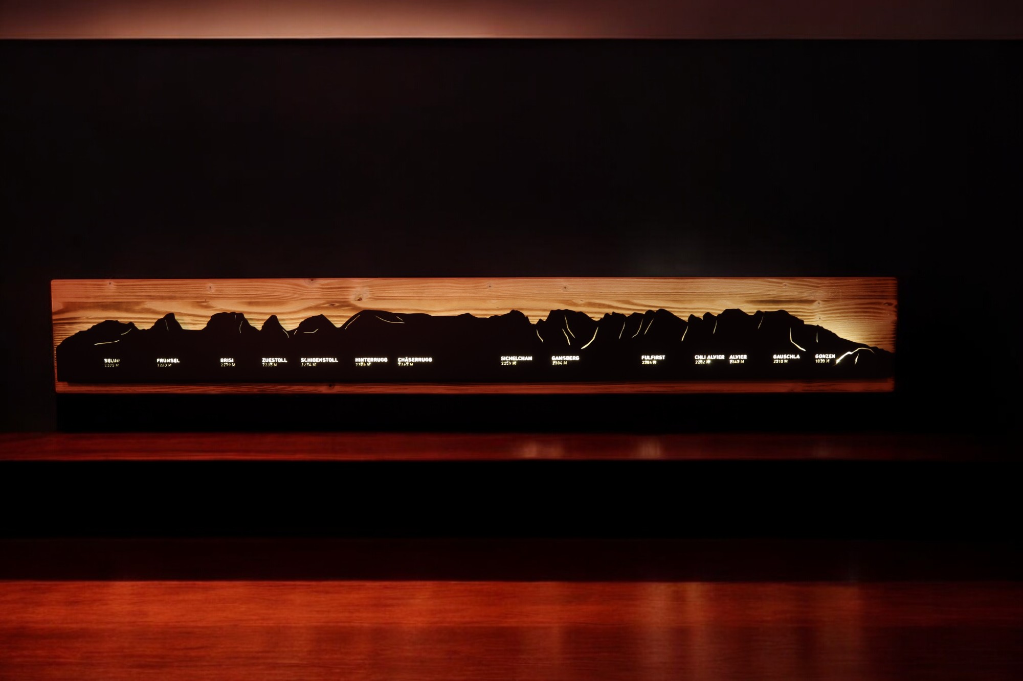 Bild beleuchtet 185cm mit Silhouette Churfirsten bis Gonzen auf Holz