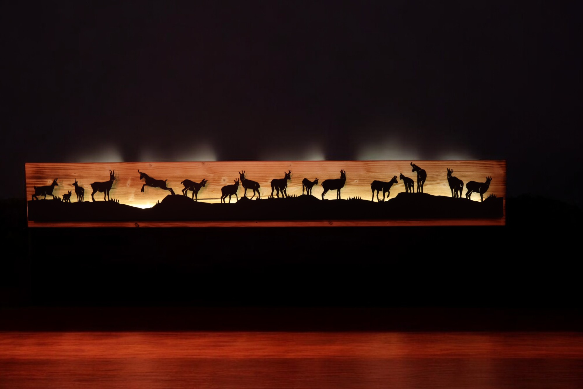 Bild beleuchtet 185cm mit Silhouette Gämse auf Holz