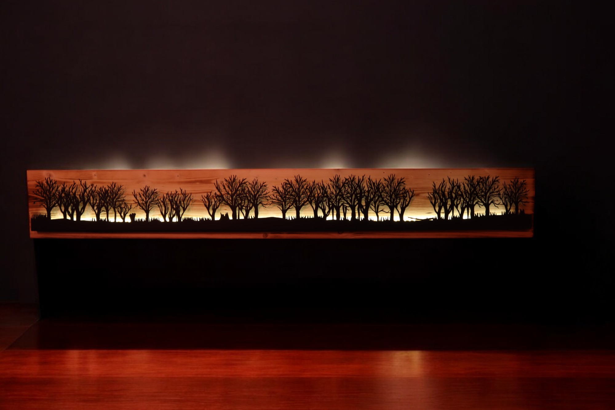 Bild beleuchtet 185cm mit Silhouette Wald auf Holz