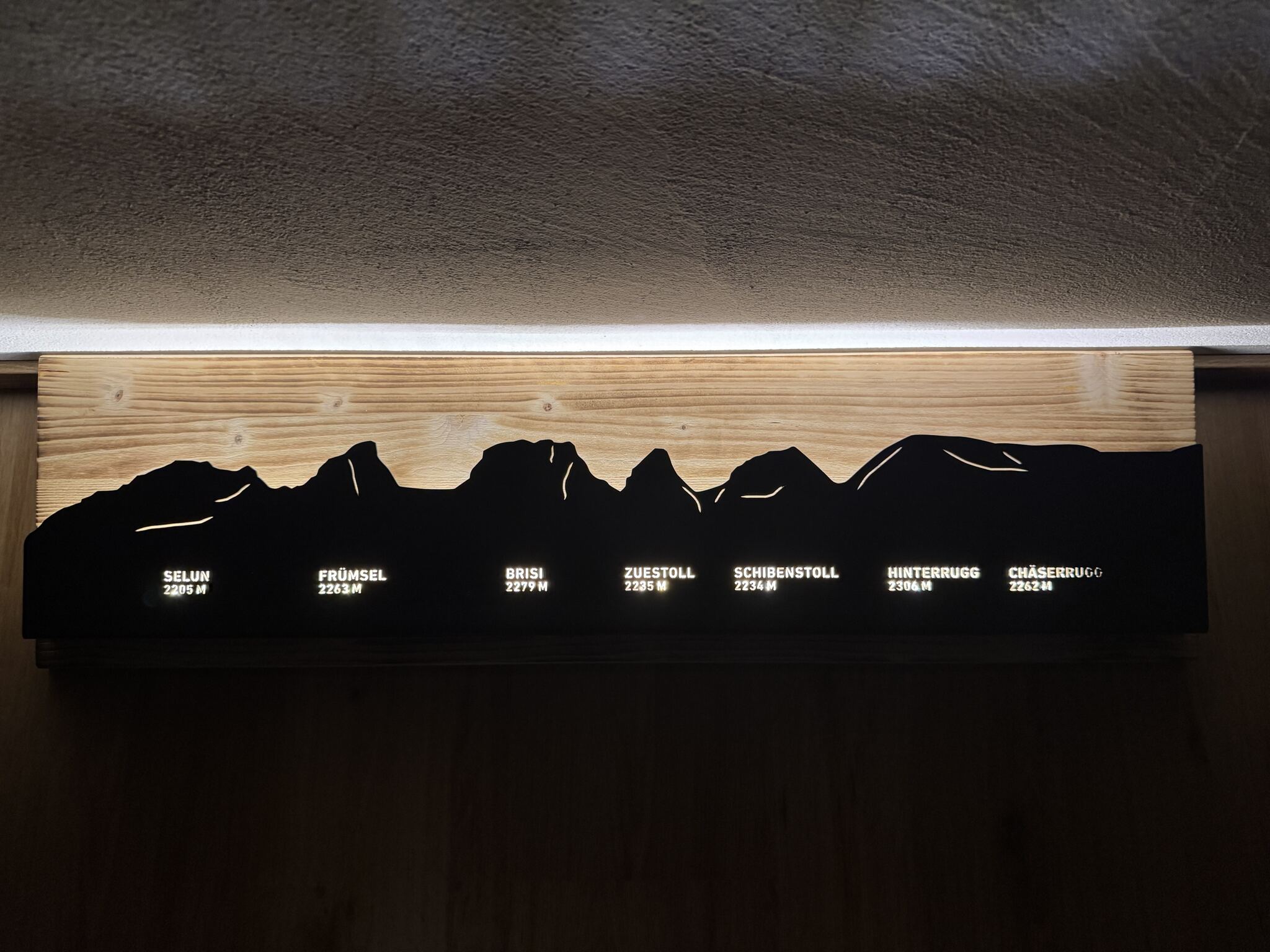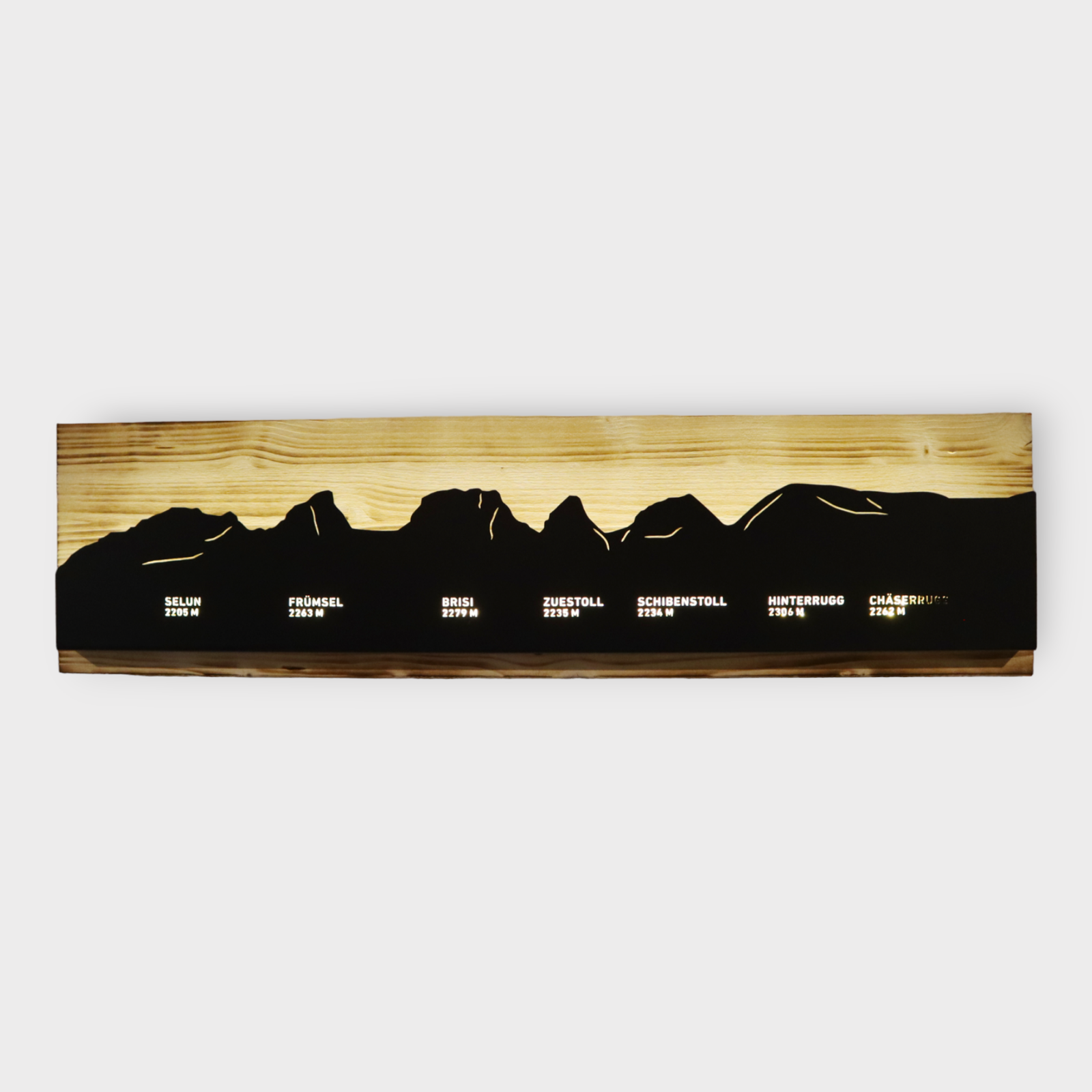 Bild beleuchtet 92 cm mit Silhouette Churfirsten Walensee auf Holz