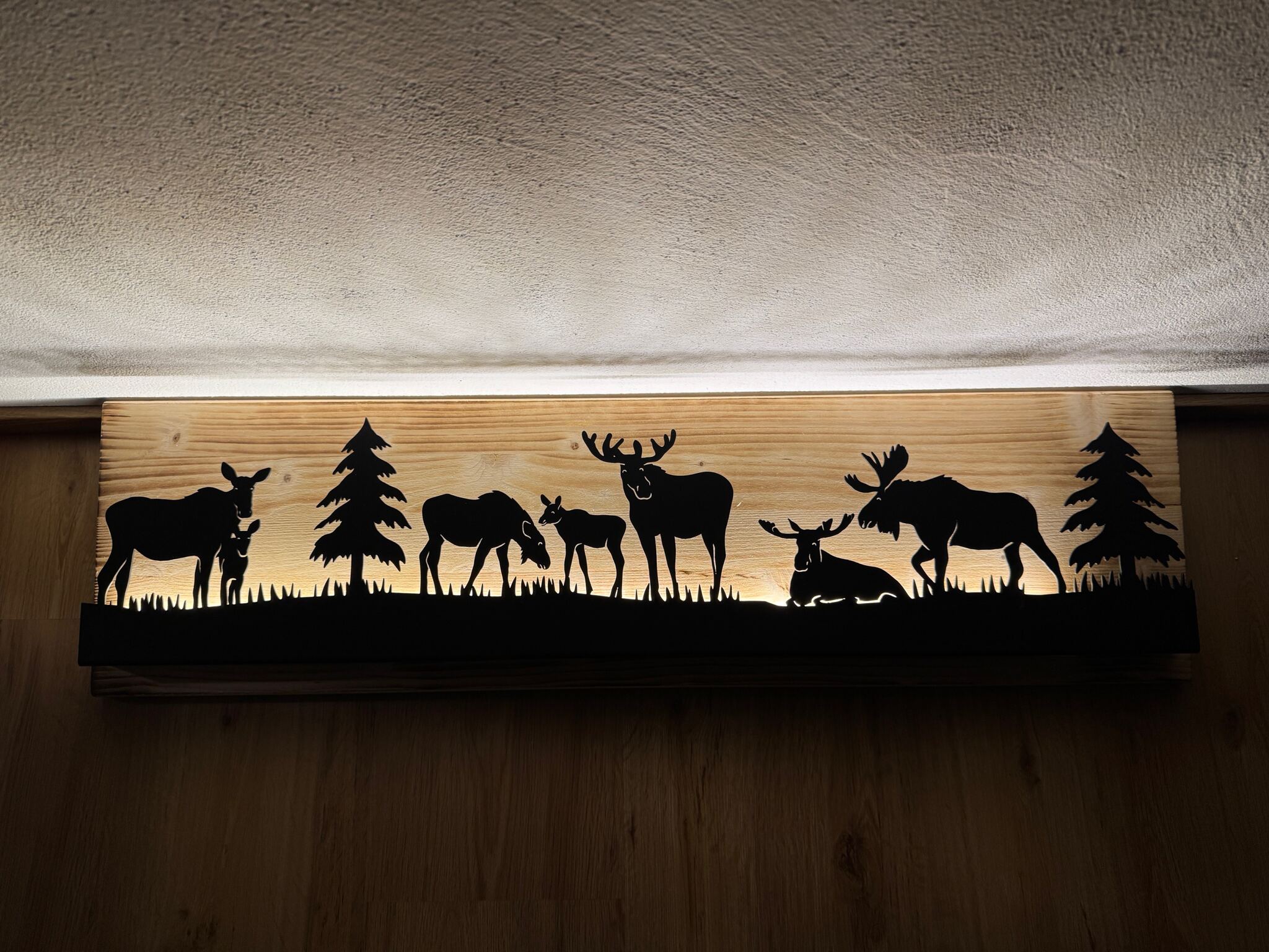 Bild beleuchtet 92 cm mit Silhouette Elche