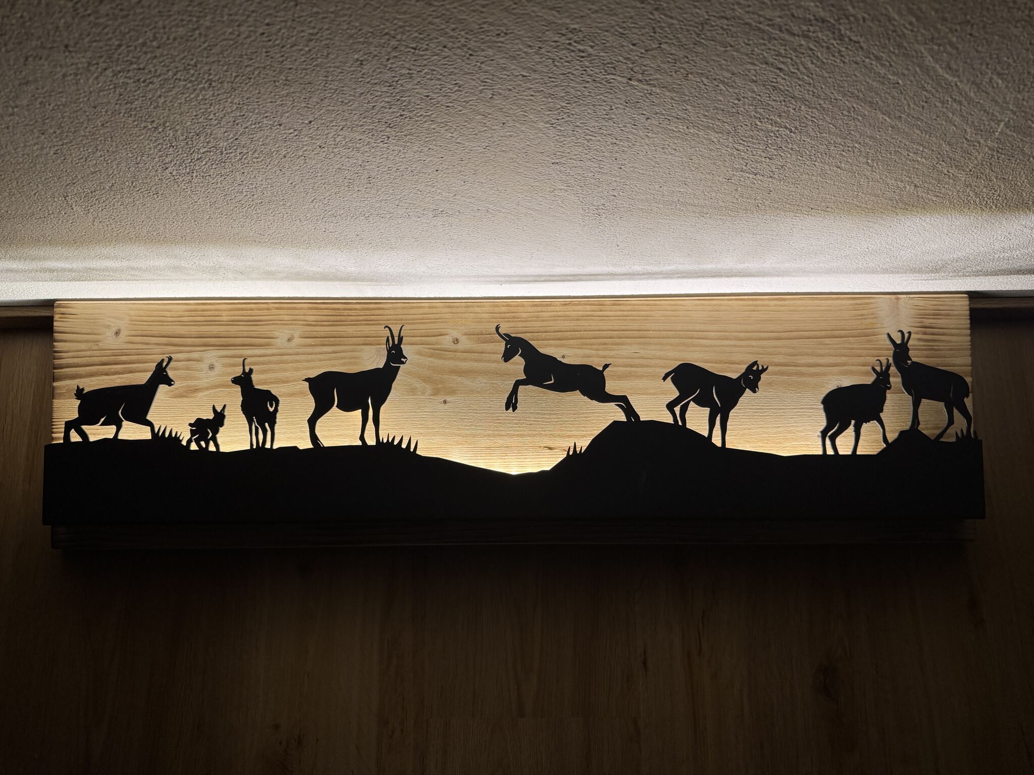 Bild beleuchtet 92 cm mit Silhouette Gämse Teil 1 auf Holz