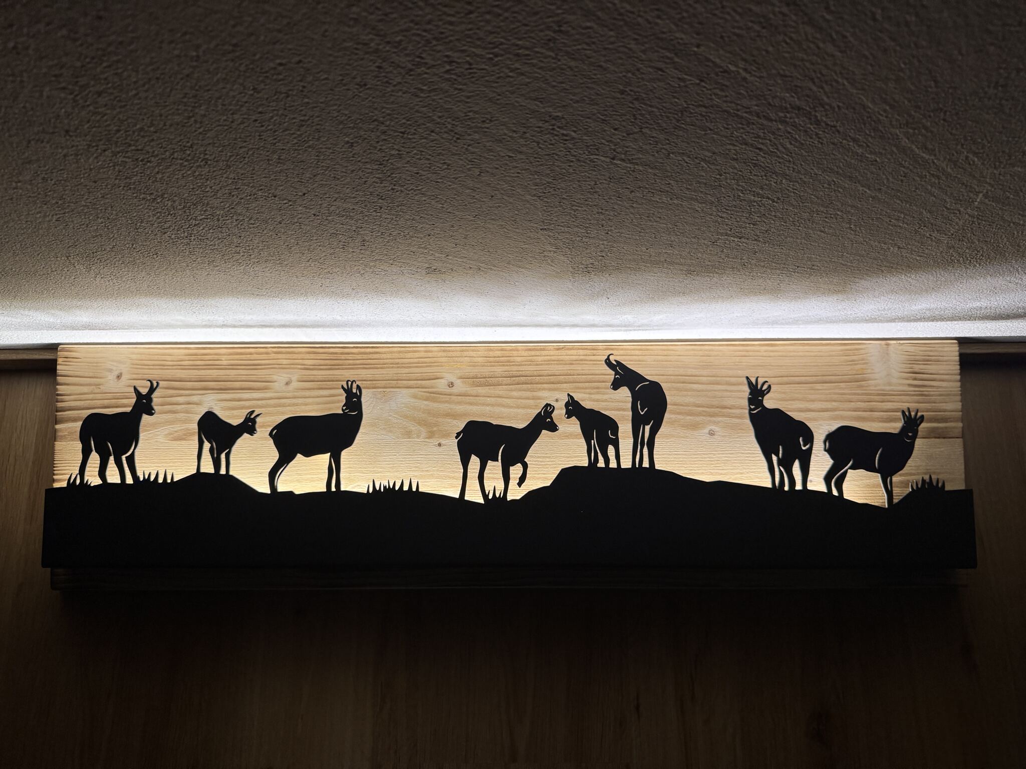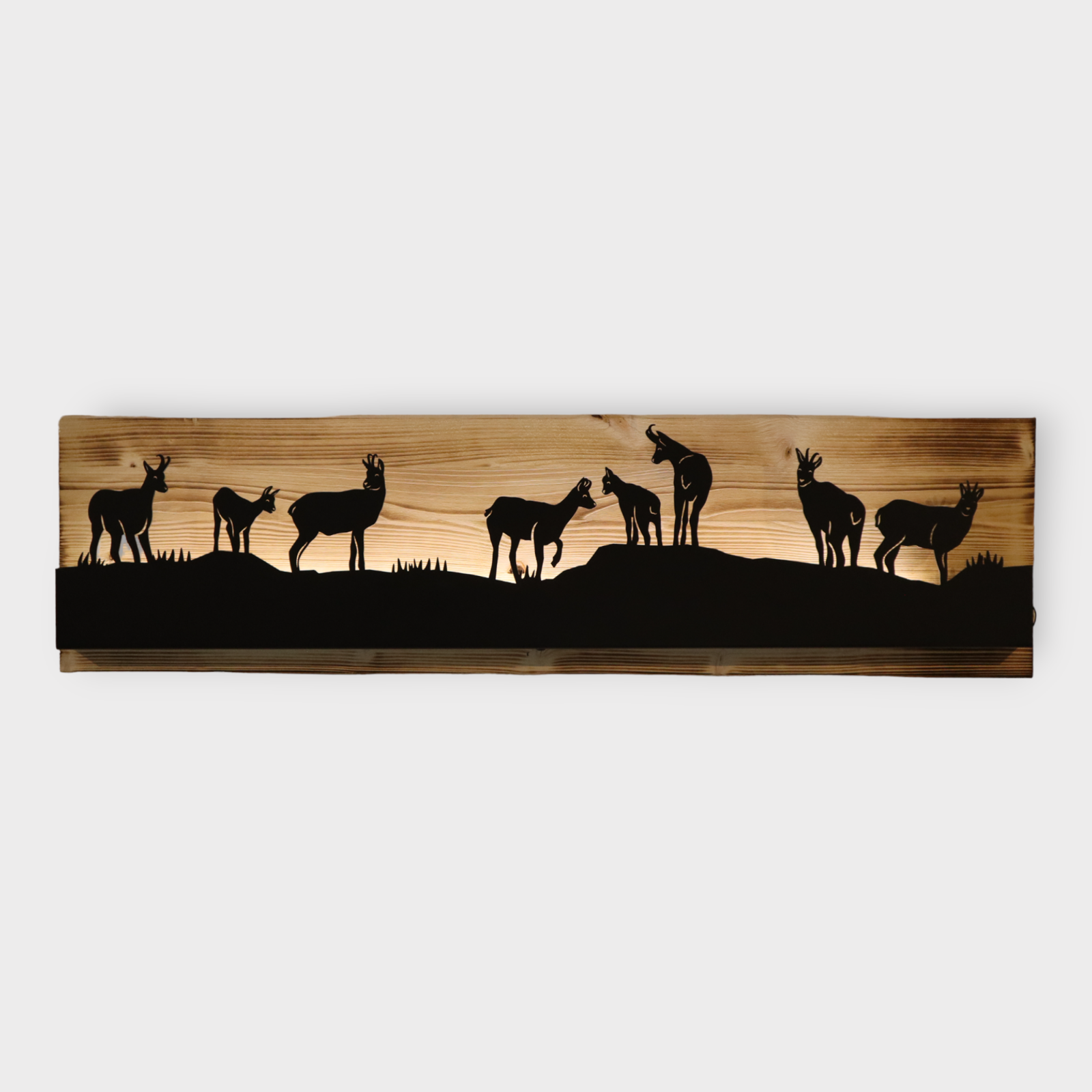 Bild beleuchtet 92 cm mit Silhouette Gämse Teil 2 auf Holz
