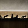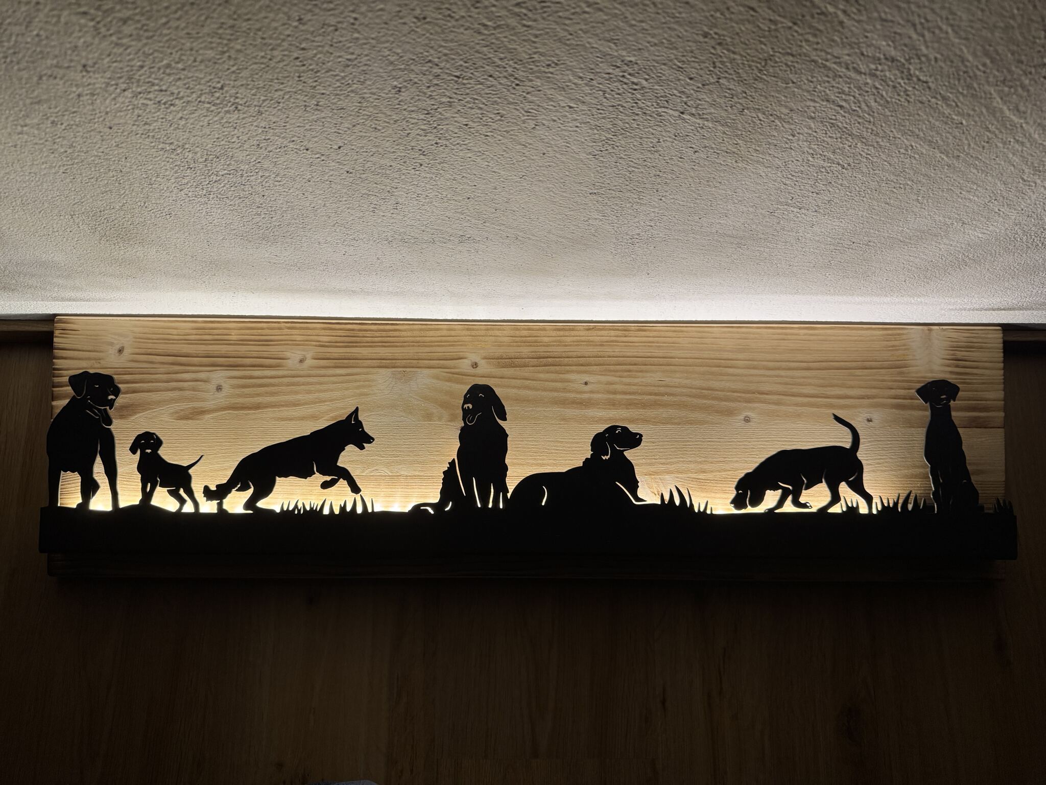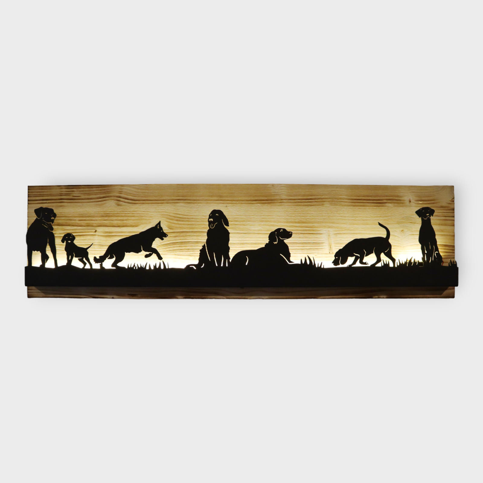 Bild beleuchtet 92 cm mit Silhouette Hunde auf Holz