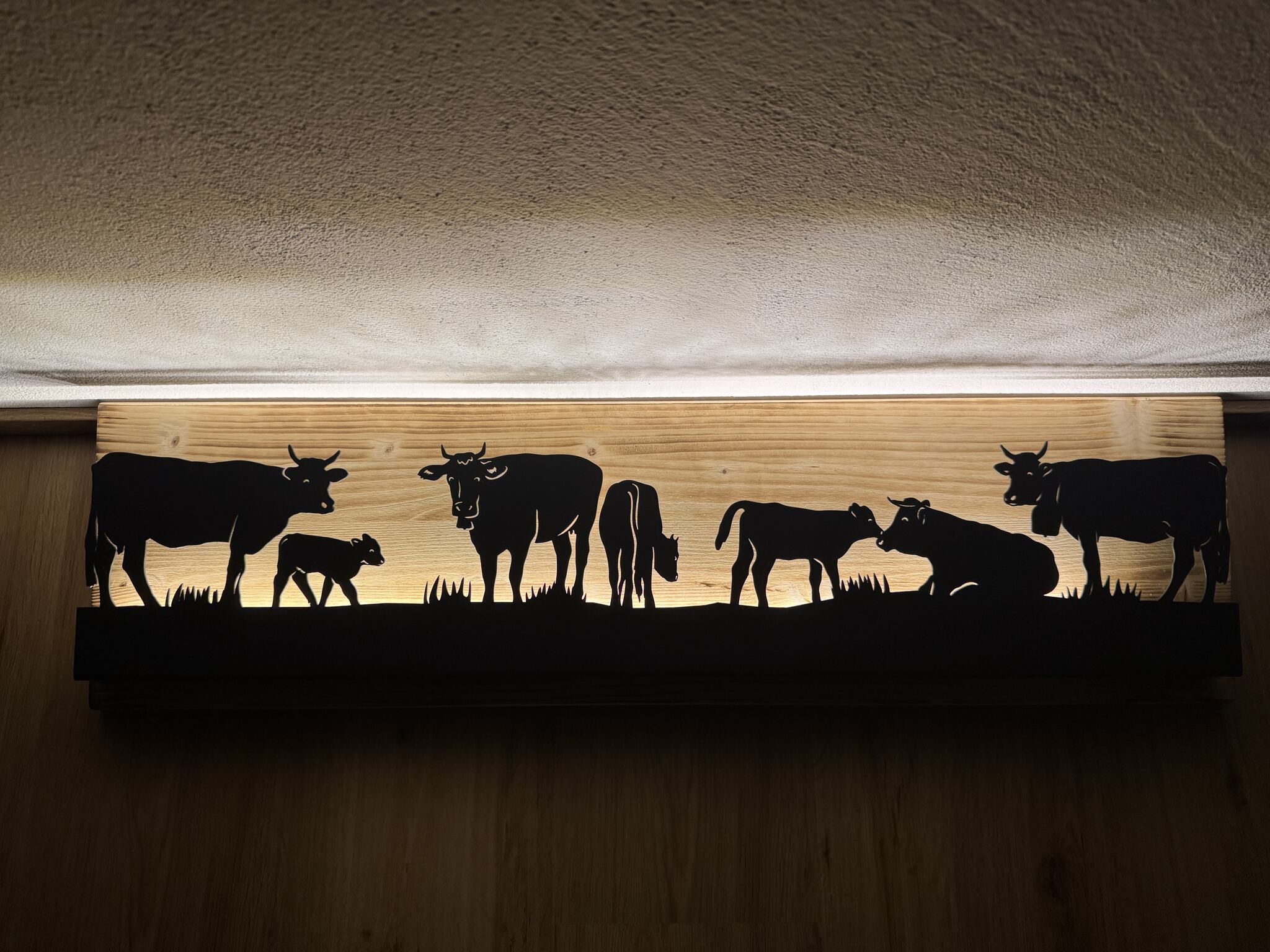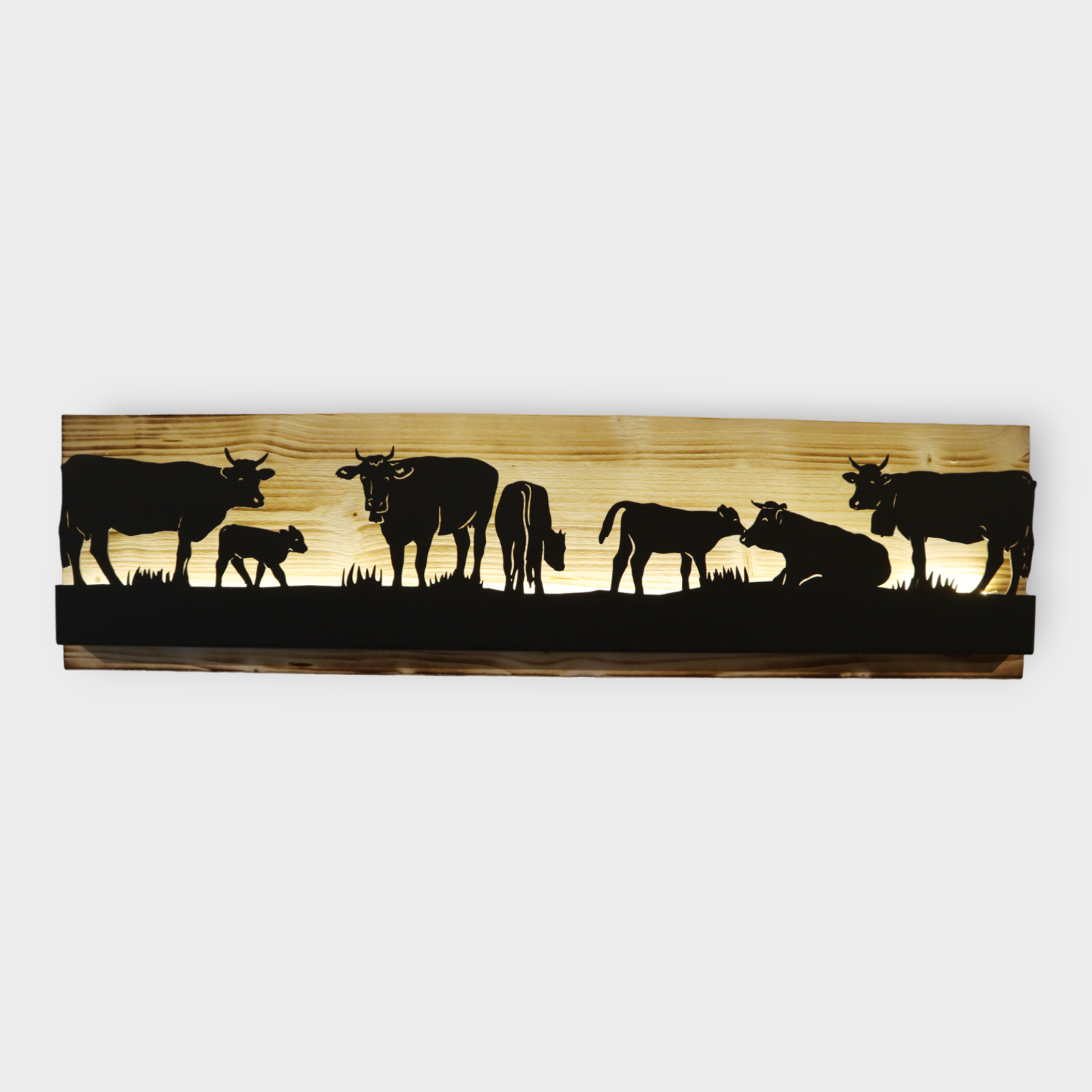 Bild beleuchtet 92 cm mit Silhouette Kühe am weiden Teil 1 auf Holz