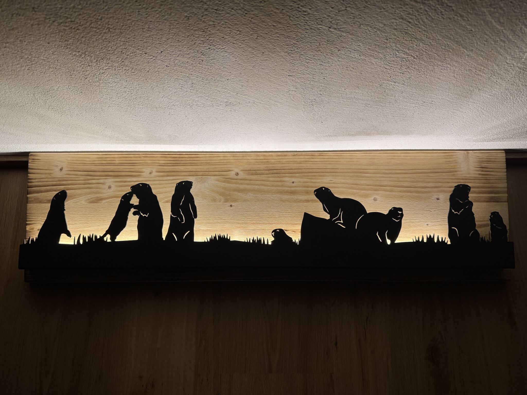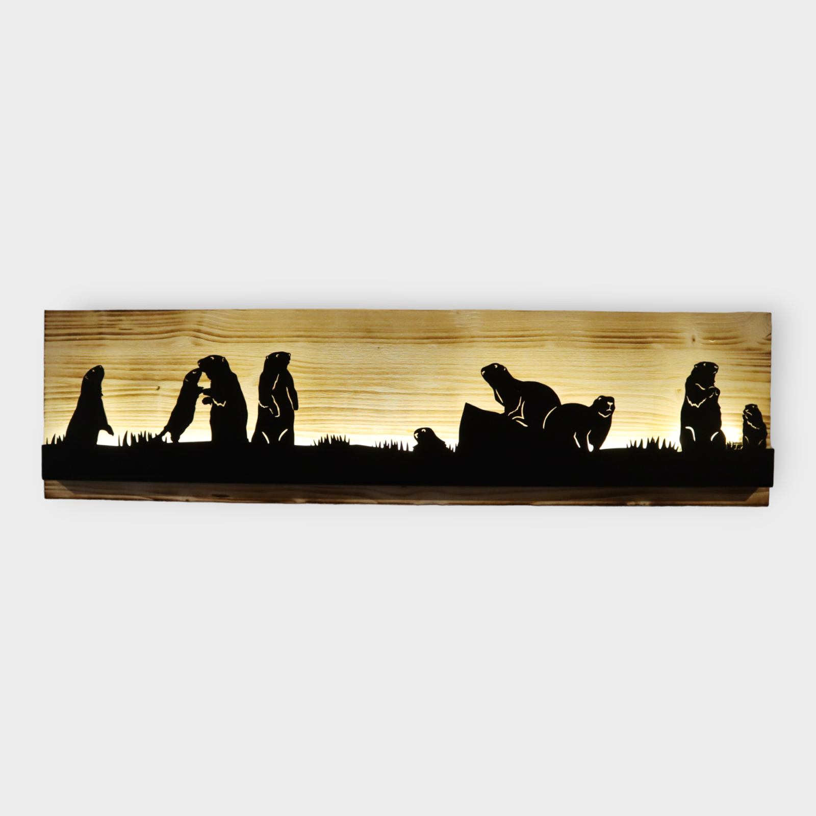 Bild beleuchtet 92 cm mit Silhouette Murmeltier auf Holz