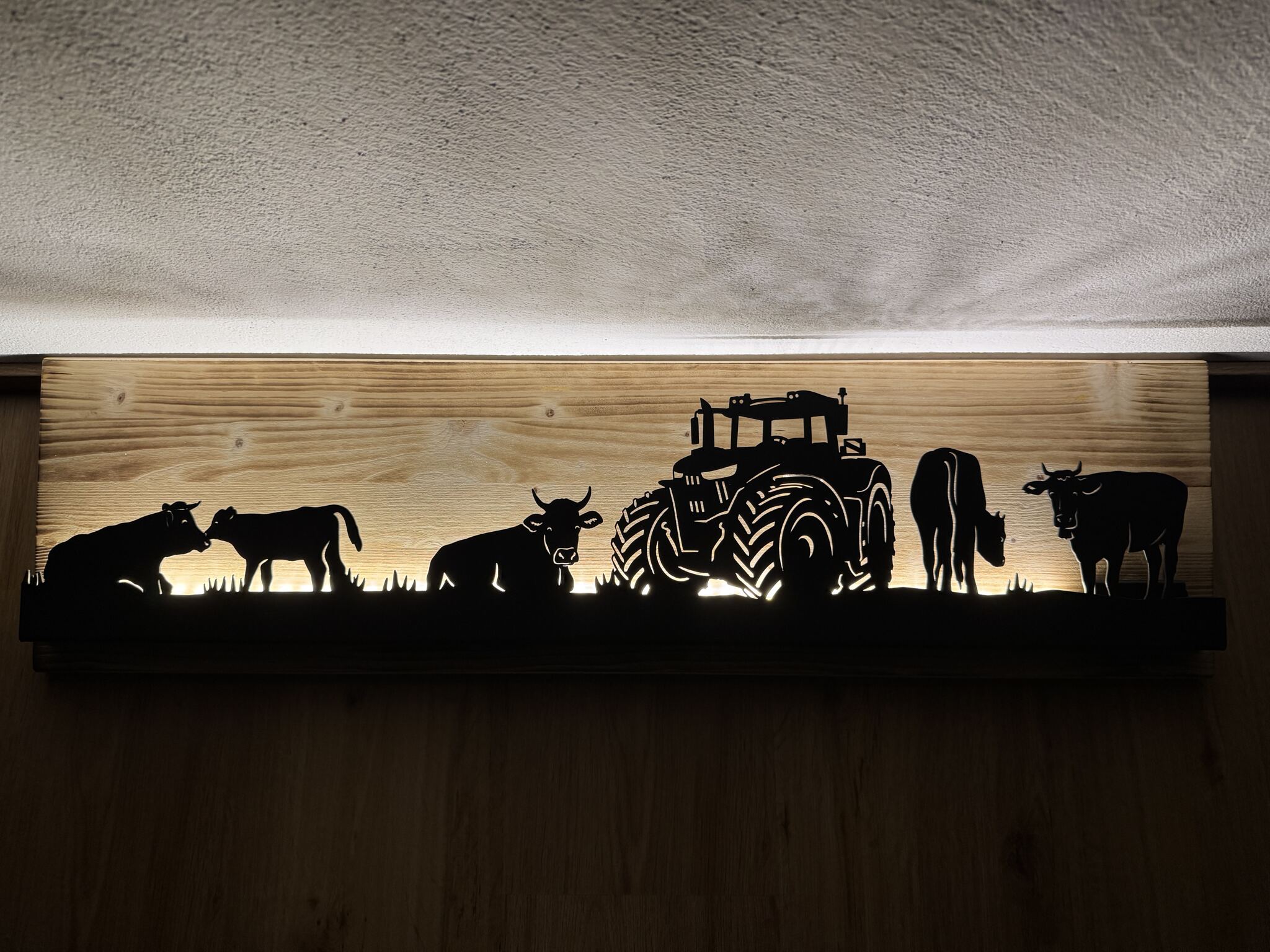 Bild beleuchtet 92 cm mit Silhouette Traktor Neutral