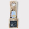 Schieferplatte mit weissem Herz und Blumen.